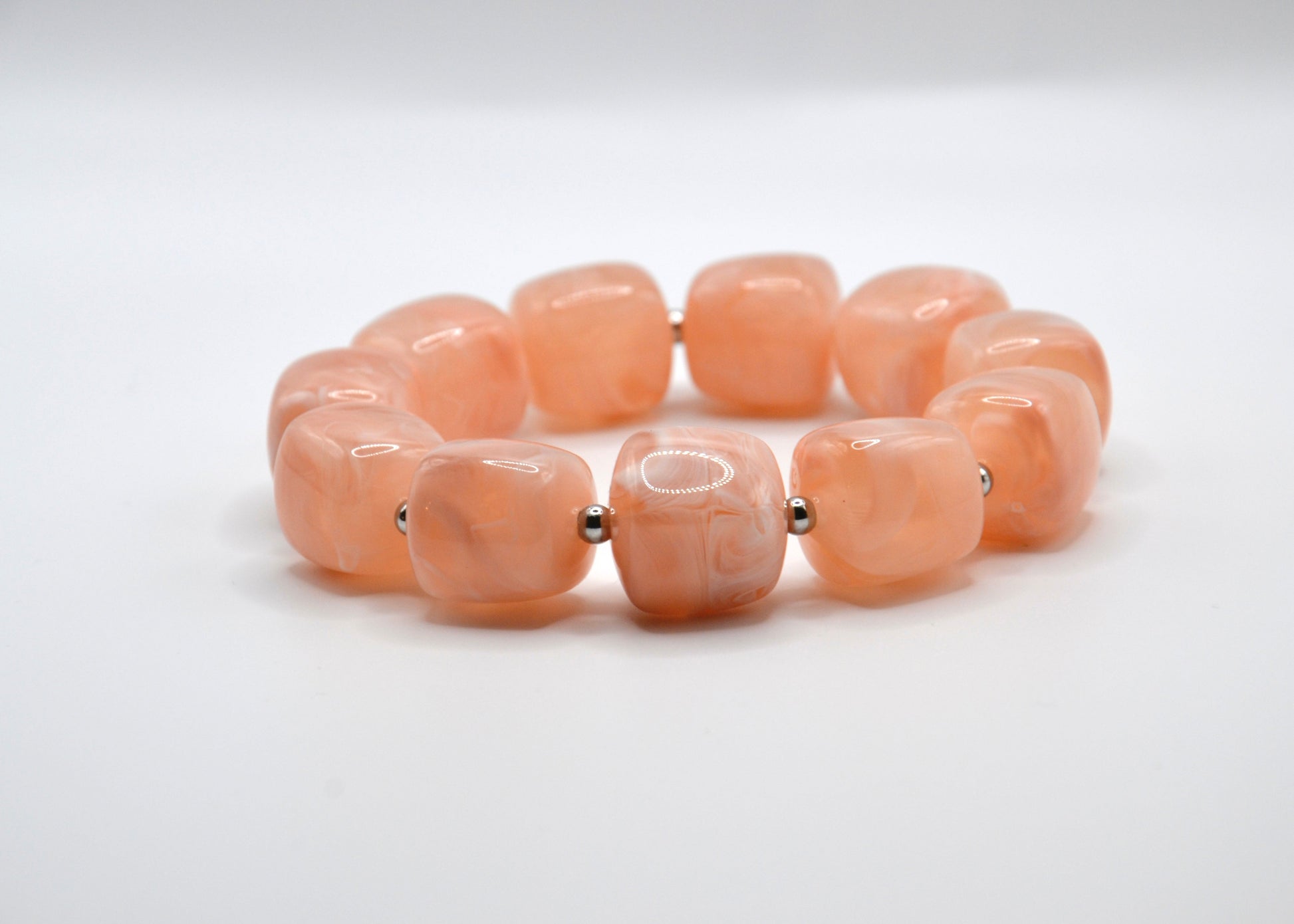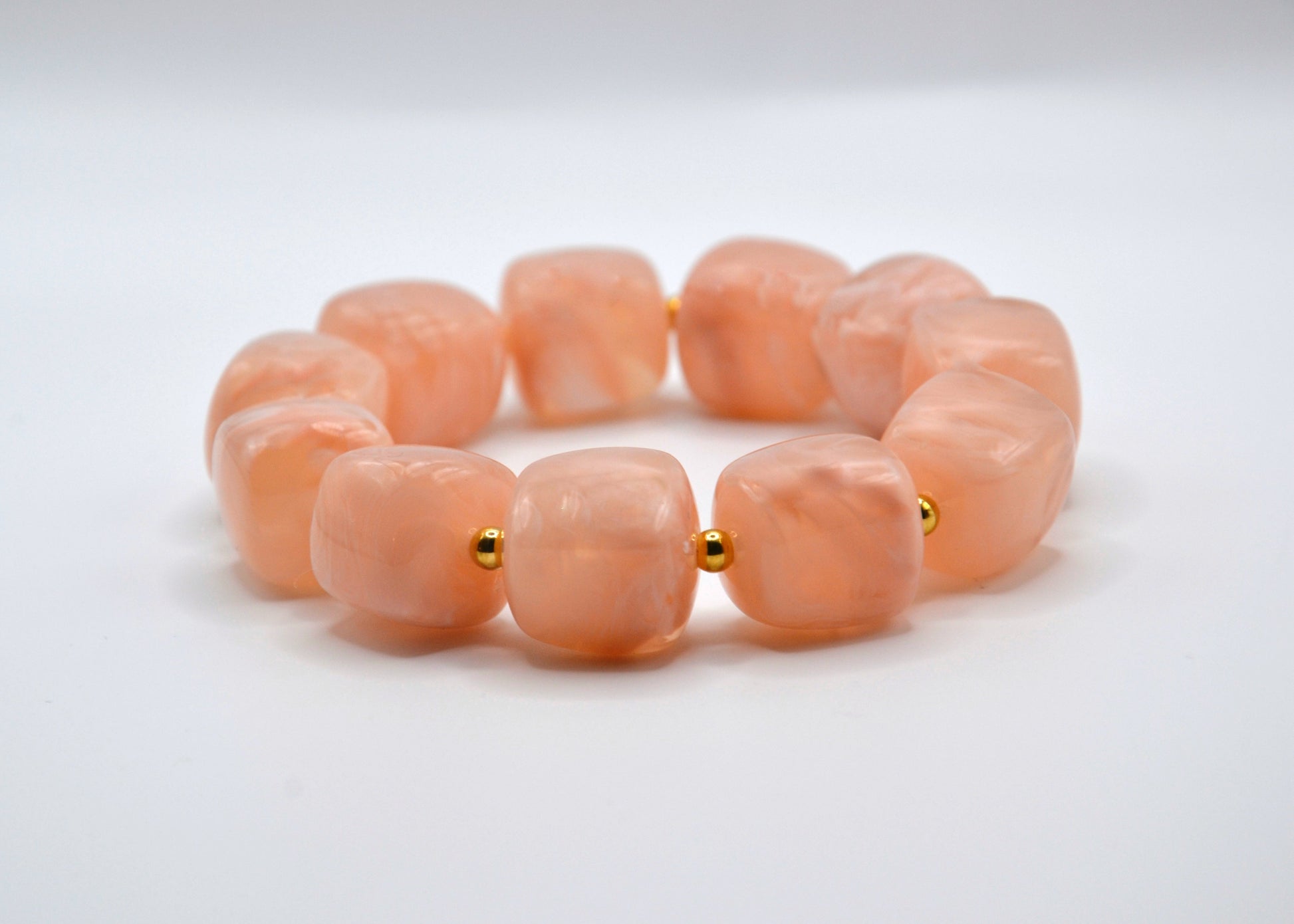 Le bracelet Colette est composé de 11 perles carrées aux bords arrondis, séparées par 11 intercalaires en acier inoxydable doré ou argenté. Monté sur un fil élastique résistant, il s’adapte facilement à différentes tailles de poignets grâce à son diamètre de 60 mm. Conçu en acier inoxydable et en acrylique, deux matériaux durables et résistants à l’eau comme à l’usure du temps, ce bracelet allie confort, légèreté et modernité. Il est disponible dans plusieurs coloris et se décline également en version collier assorti.