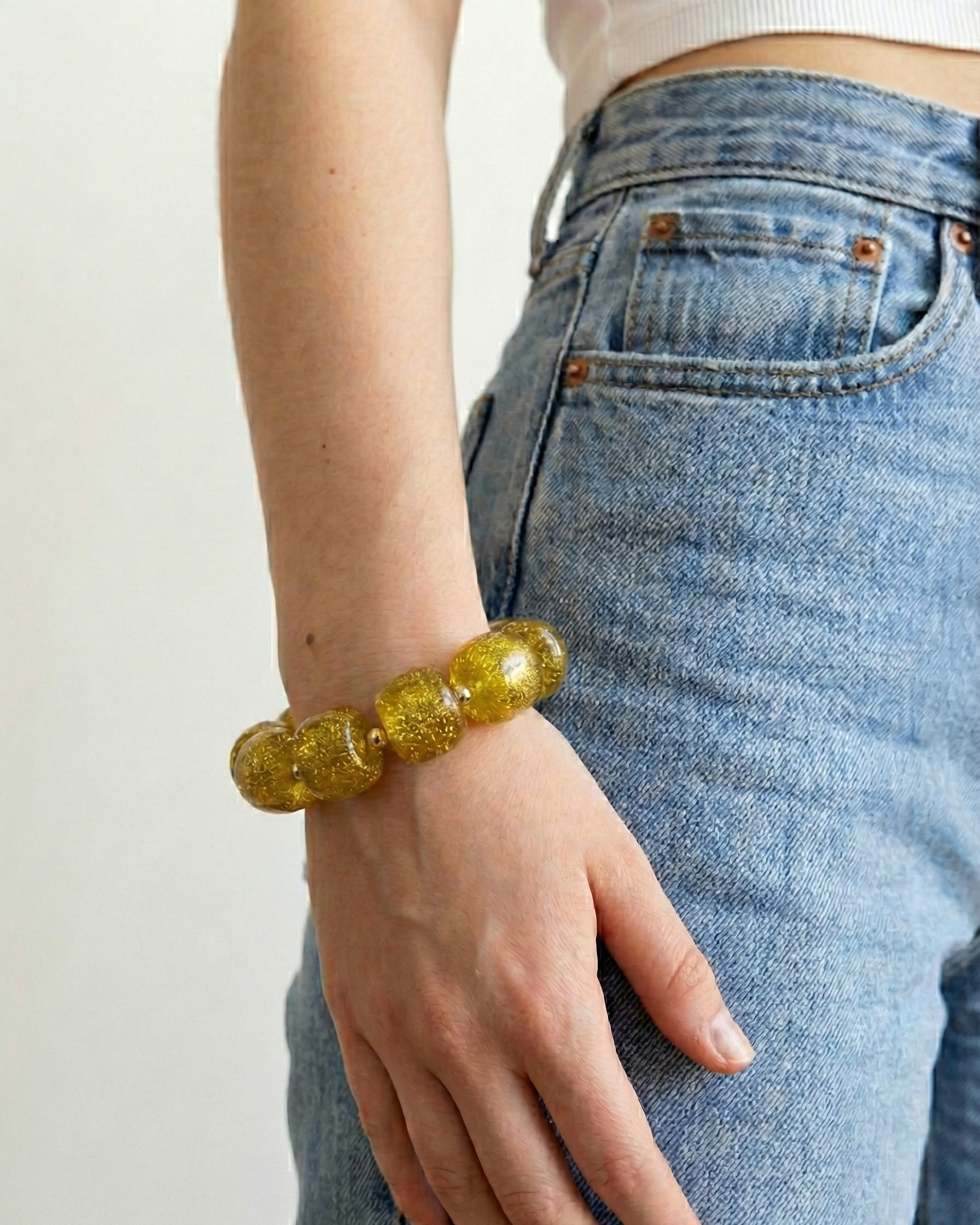 Le bracelet Colette est composé de perles colorées en résine, associées à des séparateurs en acier inoxydable dorés ou argentés, qui résistent parfaitement à l’eau pour t’accompagner au quotidien sans contrainte. Il est disponible en deux tailles : la taille classique avec 11 perles (diamètre 5,8 cm) et la taille 10 perles (diamètre 5,2 cm), idéale pour les poignets très fins ou les enfants. Facile à porter seul pour une touche de couleur ou en accumulation avec d’autres modèles pour un style encore plus solaire, le bracelet Colette se décline également en collier pour un look assorti.