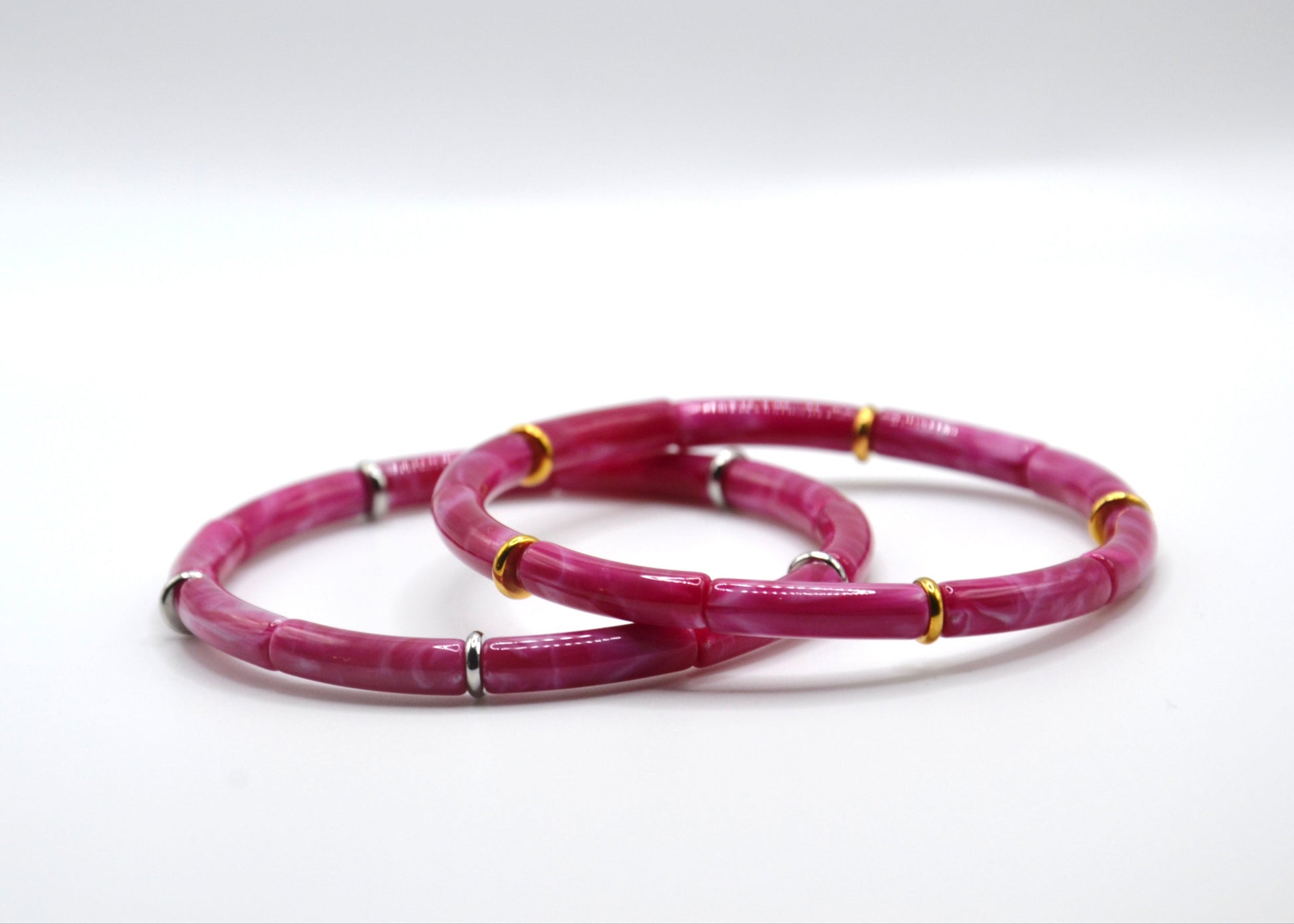 Le bracelet Thérèse est un bracelet solide et qui est composé de tubes colorés et de perles lisses dorées ou argentés en acier inoxydable.